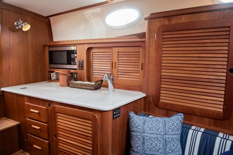 Hinckley invented an entirely new class of boat with the introduction of the original Picnic Boat nearly 25 years ago. This iconic (Hinckley Picnic Boat) features several groundbreaking innovations we welcome you to explore. The MK III is the latest version of this modern classic and this boat is a superb low hour example (212 engine hours) with a complete service history. FALCON 111 is a very lightly used (Hinckley MK III) Jet Boat. She has been lift kept on the brackish waters of Chesapeake Bay her entire life and has been professionally maintained with an open checkbook since new. Her knowledgeable owners have made some thoughtful improvements to this superbly optioned yacht. One such improvement is the asymmetric table that provides space for four to dine in the pilothouse. Another clever modification is the custom armrests located at the forward end of the pilothouse settees. These armrests give the settees a more luxurious feel. If you are looking for a like new Hinckley Picnic Boat MK III at a fraction of the price of new you owe yourself a trip to Chestertown. 212 Engine hours Island Berth Helm Deck Air Custom Table Generator Full Jet Service by Hamilton Jet ( 5 hours of run time since)